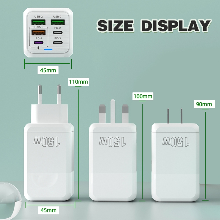 150W 3 x USB + 3 x USB-C / Type-C Multi-port Fast Charger