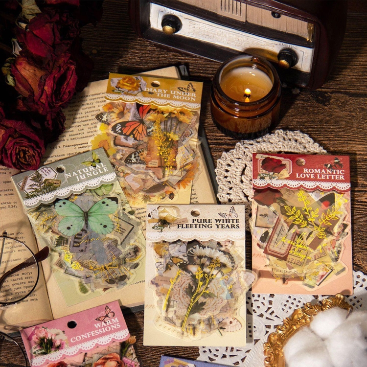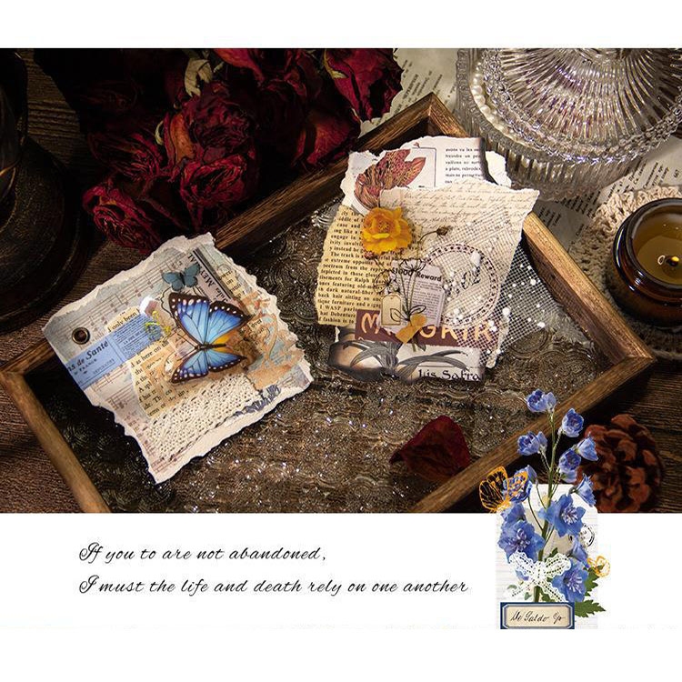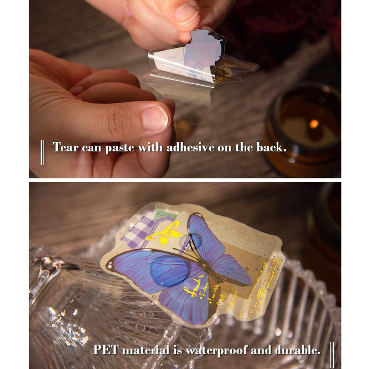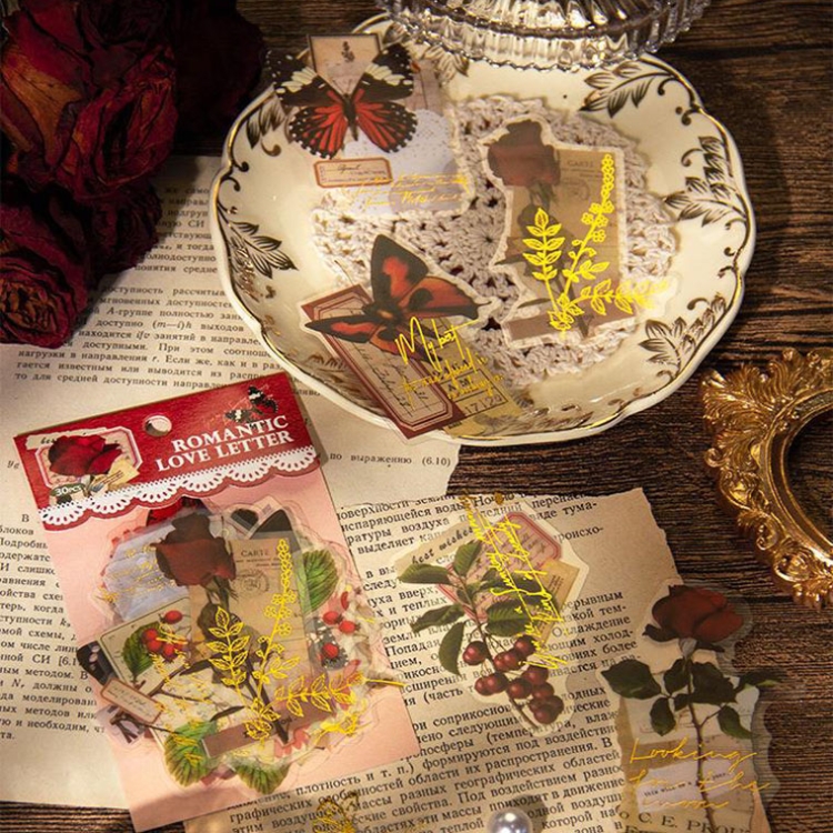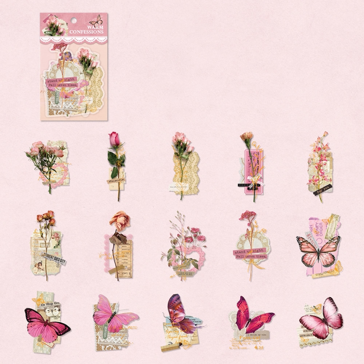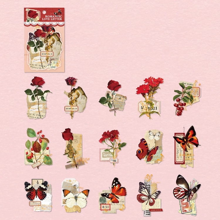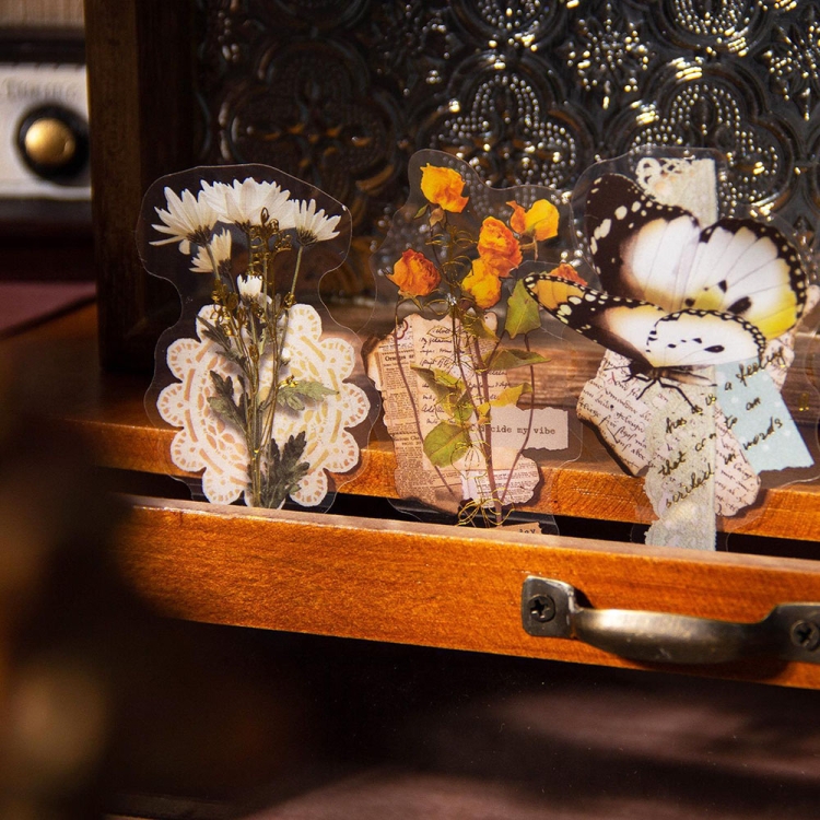 15pcs /Pack PET Butterfly Flower Series Retro DIY Hot Stamping Handbook Stickers