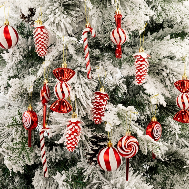 15pcs /Set Christmas Tree Ornaments Lollipops Swirls Painted Candies