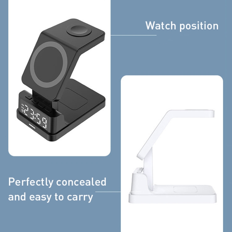 15W 4 in 1 Magnetic Clock Desktop Vertical Wireless Charger, 4 in 1