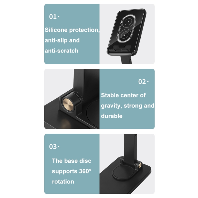 15W Desktop Wireless Charging Rotating Phone Holder Lazy Tablet Folding Lifting Bracket