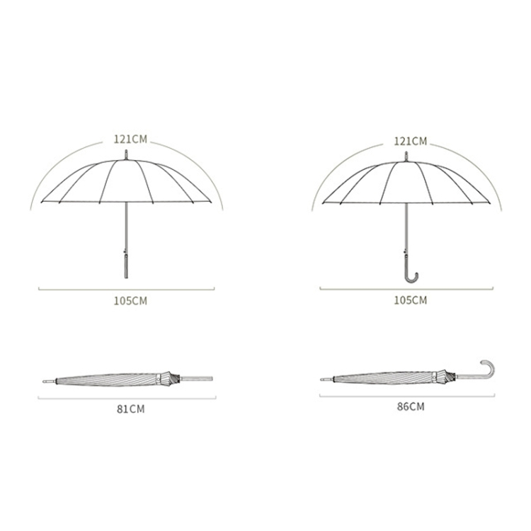 16 Bone Plain Straight Umbrella Small Fresh Long Handle Umbrella