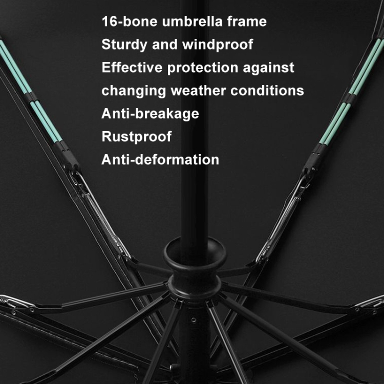 3. 16-bone umbrella frame, strong windproof, can effectively withstand changing weather, anti-breakage, anti-rust, anti-deformation