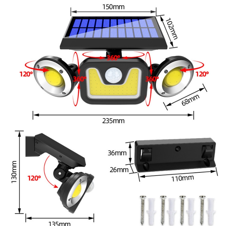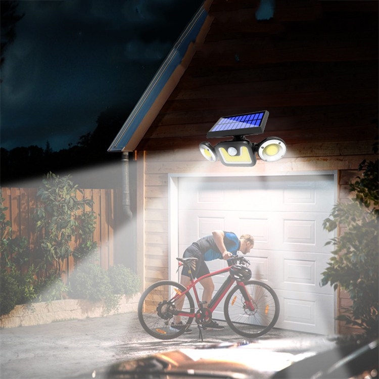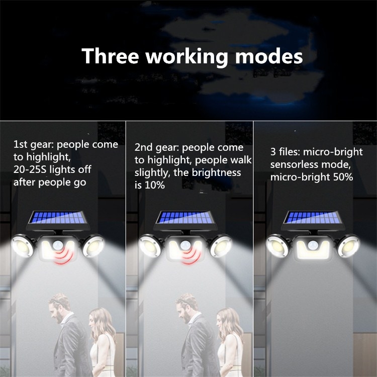 16W Solar Three-head Wall Lamp Outdoor Waterproof Human Body Induction Courtyard Wall Lamp