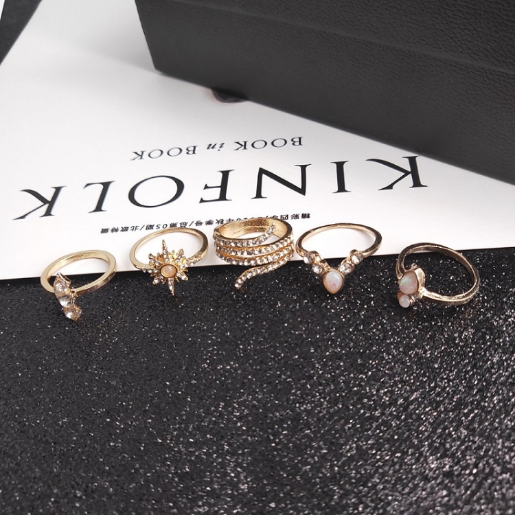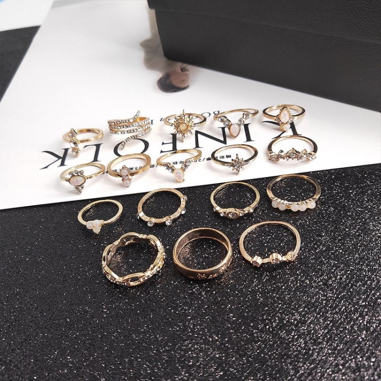 17pcs/set Bohemian Alloy Ring With Diamonds