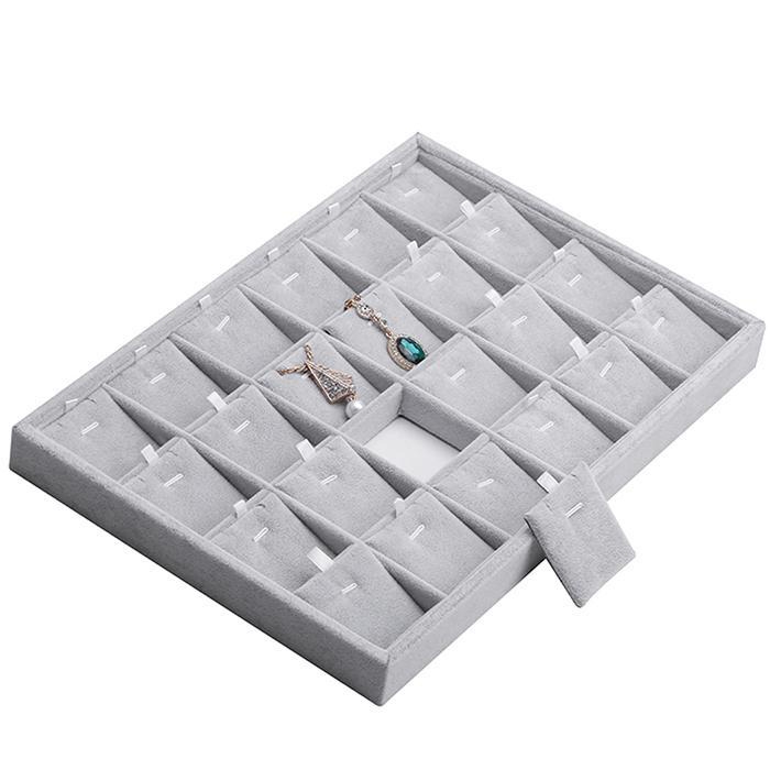 18 Grids Flannelette Ear Stud Earrings Ring Pendant Necklace Display Rack Jewelry Storage Tray