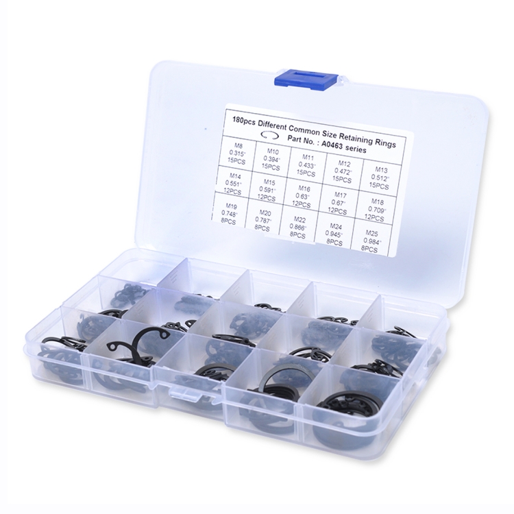 2. Each clip is constructed of durable spring steel and has a black oxide finish to resist rust and corrosion. The complete set of durable snap rings comes organized in a divided case for easy portability, storage and quick identification.