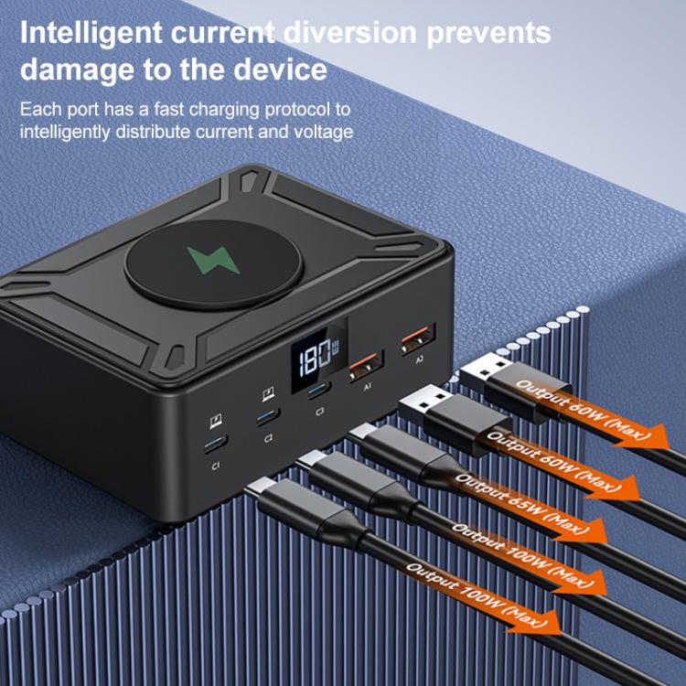 190W LED Display 3 x Type-C + 2 x USB Multi Ports Charger Support QI Wireless Charging