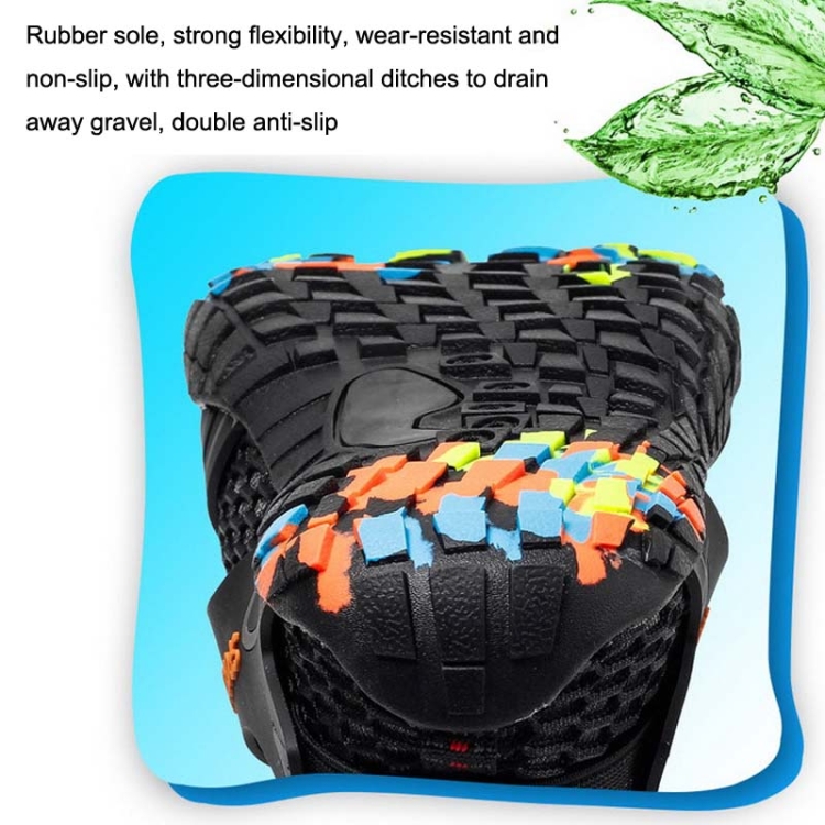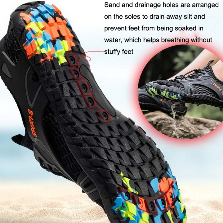 10. Sand and drainage holes are arranged on the soles to drain away silt and prevent feet from being soaked in water, which helps breathing without stuffy feet