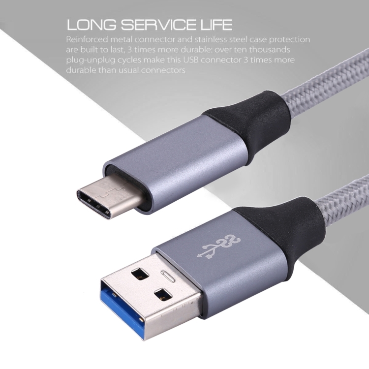 1m Wires Woven Metal Head USB-C / Type-C 3.1 to USB 3.0 Data / Charger Cable