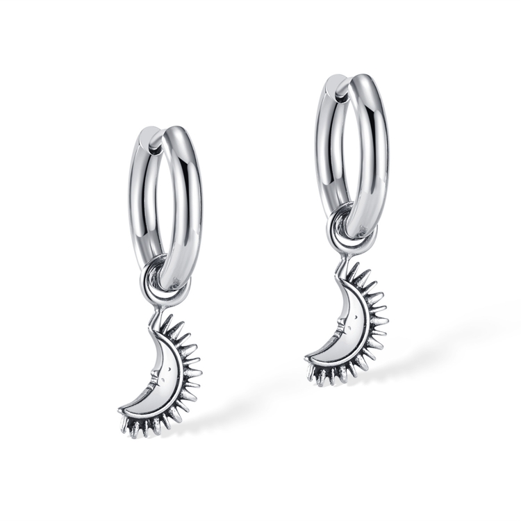 1pair Vintage Personalized Stainless Steel Moon Pendant Earrings