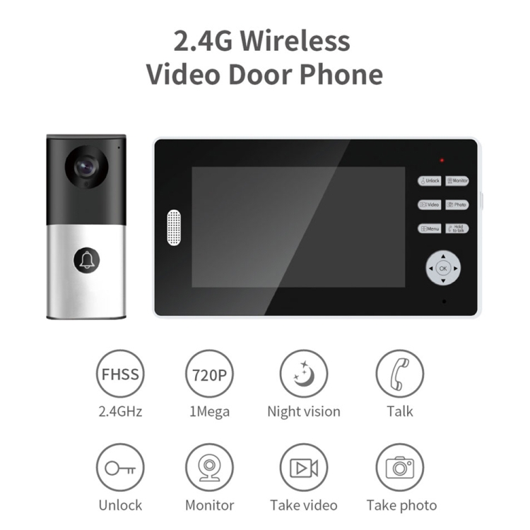 2.4G Wireless Video Doorbell 720P Support Night Vision & Talk & Monitor