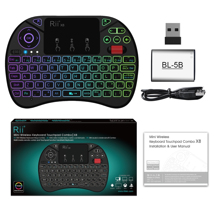 | Option | Change Colorful Backlight, Colorful Backlight, Without Baklight(Black), Without Baklight(White), Rii X8, Rii |