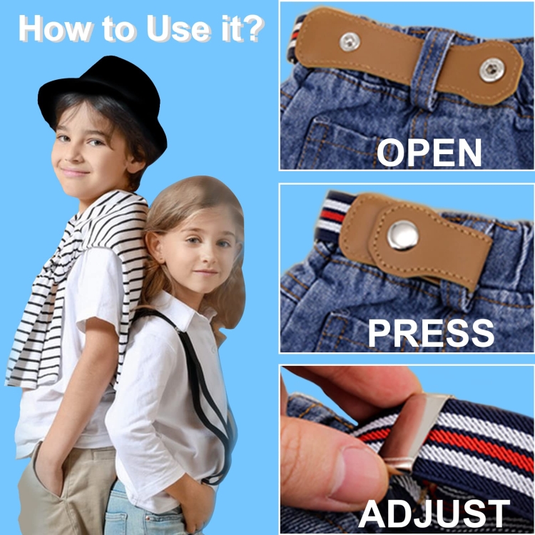 3. Snap buckle design: Unlike traditional belts with metal buckles, this buckleless children’s belt does not have bulky metal buckles.