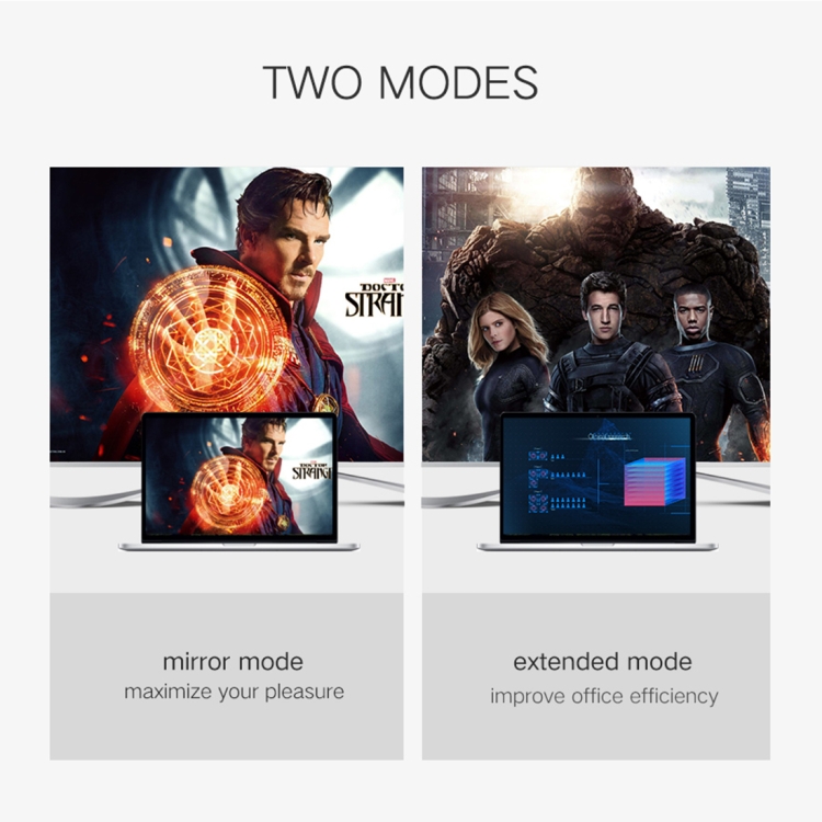 1. Support dual mode: mini DisplayPort(DP) to HDMI and VGA output