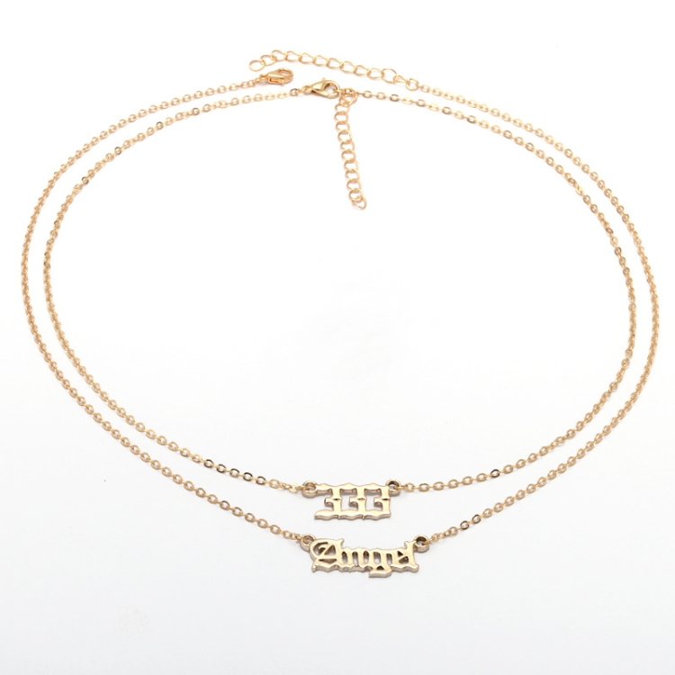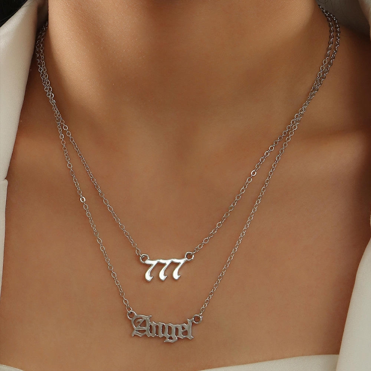 2 In 1 Angel Lucky Numbers Layered Necklace Set Women Collarbone Chain Jewelry