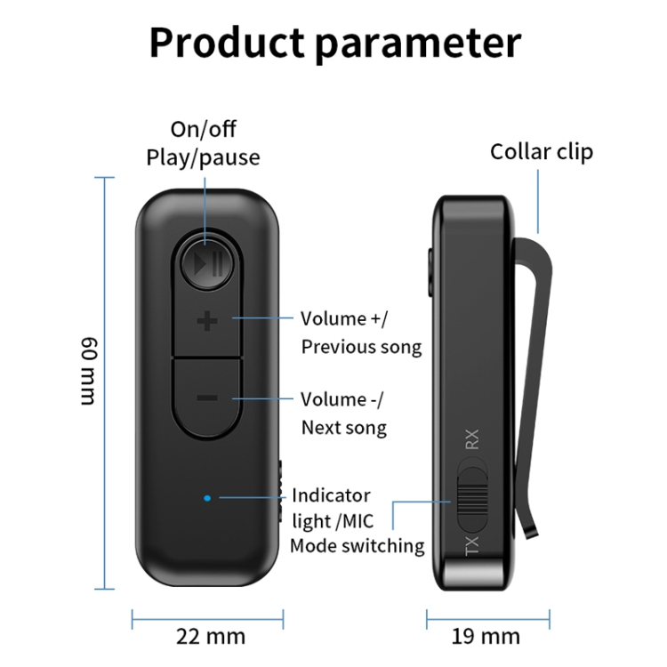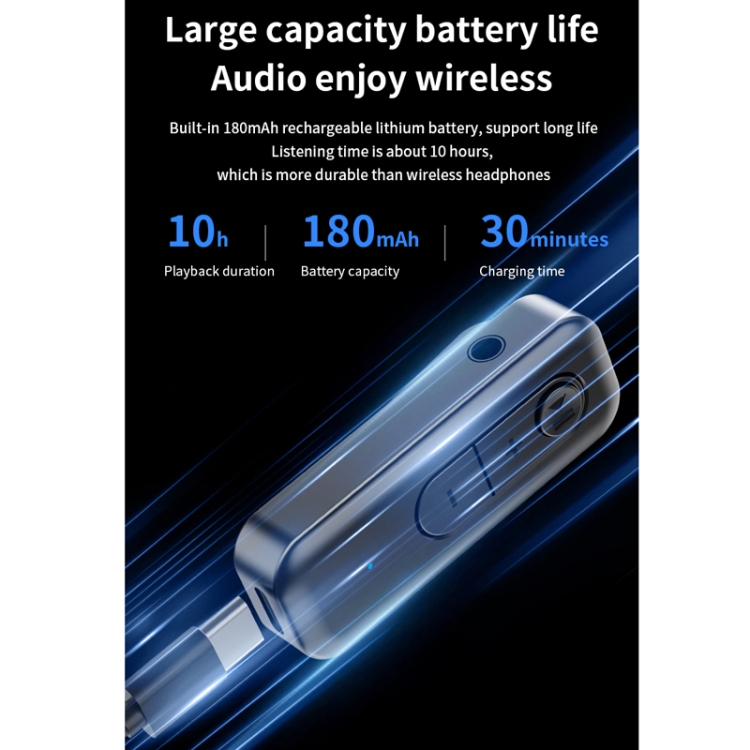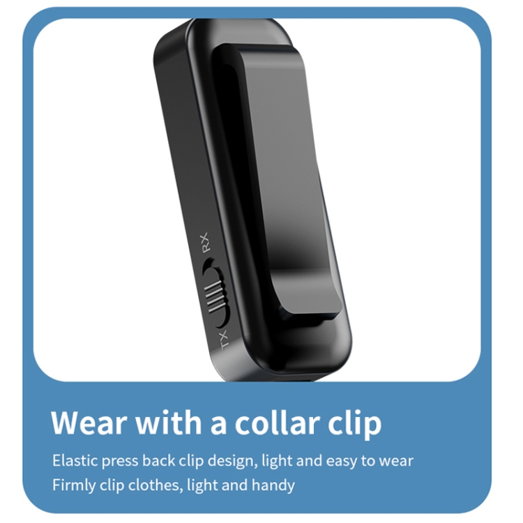 9. Built-in high-definition noise reduction call effect, supports AAC/SBC audio decoding, new elastic push-type back clip, lightweight to wear, can be carried around, used as a receiver, plug in 3.5mm earphones to upgrade wired earphones to Bluetooth earphones