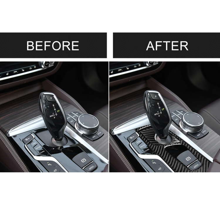 2 in 1 Car Carbon Fiber Gear Position Panel Decorative Sticker for BMW 5 Series G38 528Li / 530Li / 540Li 2018, Left Drive