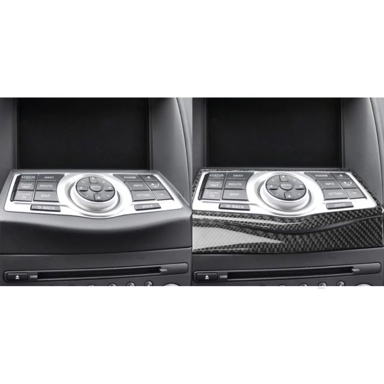 2 in 1 Car Carbon Fiber Multimedia Navigation Buttons Frame Decorative Sticker for Nissan 370Z Z34 2009-, Left and Right Drive Universal