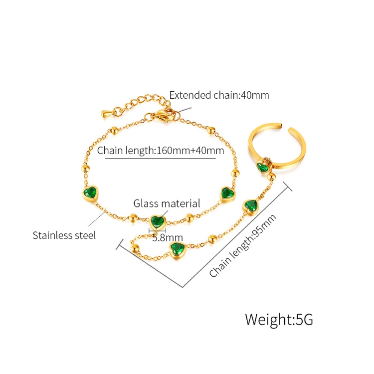 2 In 1 Emerald Heart Zirconia Stainless Steel Ring Bracelet