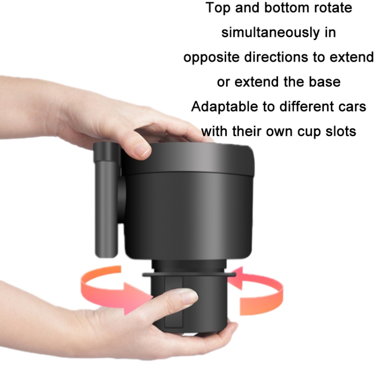3. Top and bottom can be rotated in the opposite direction to extend or extend the base to fit different cars with their own cup holders