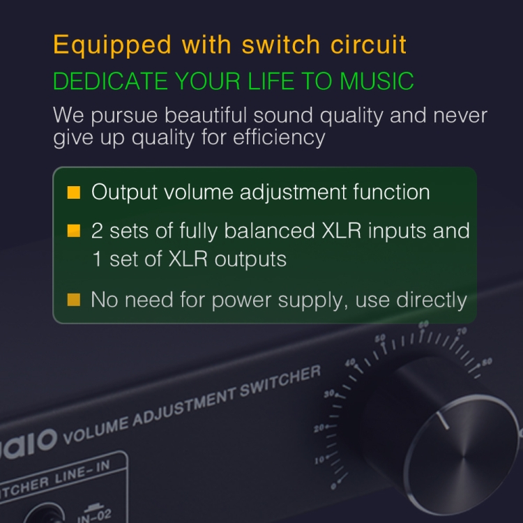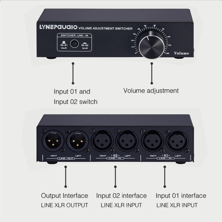 2-In 1-Out XLR Switcher Fully Balanced Passive Pre-Active Speaker Lossless Volume Control Switcher