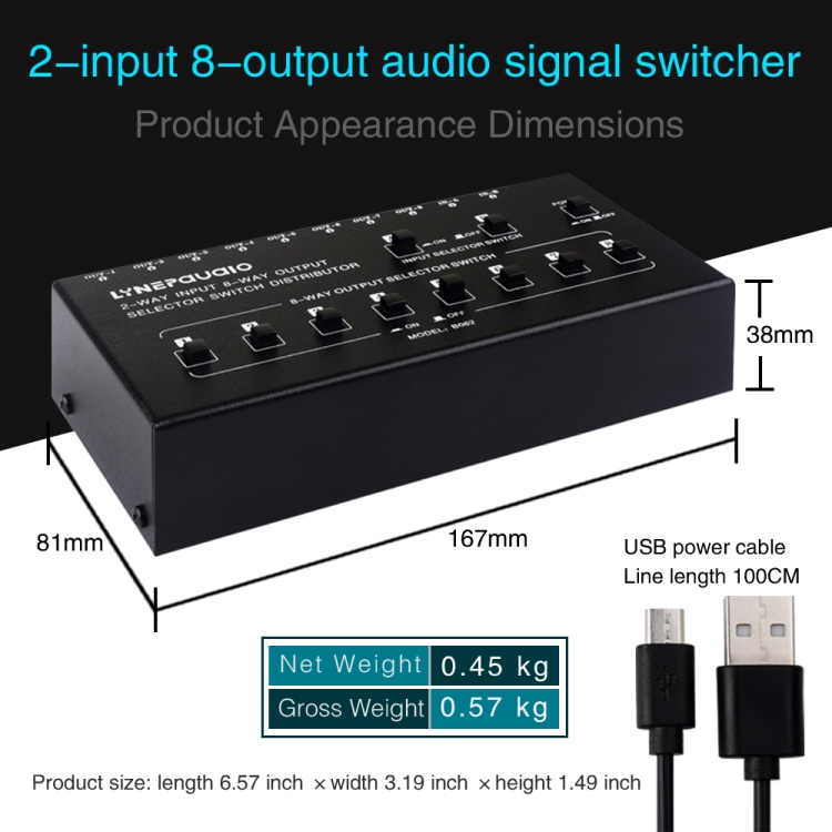 1. 8 sets stereophonic output has independent switch, able to start at the same time, also able to be closed independently, start at the same time no consumption at the signal source tone quality and volume.
