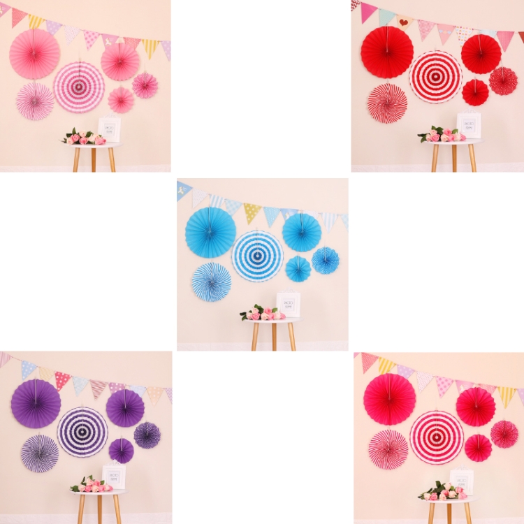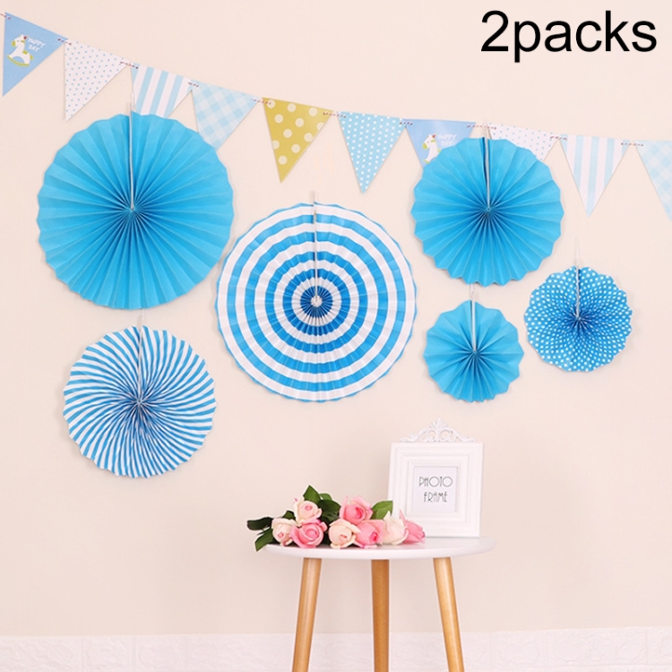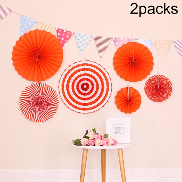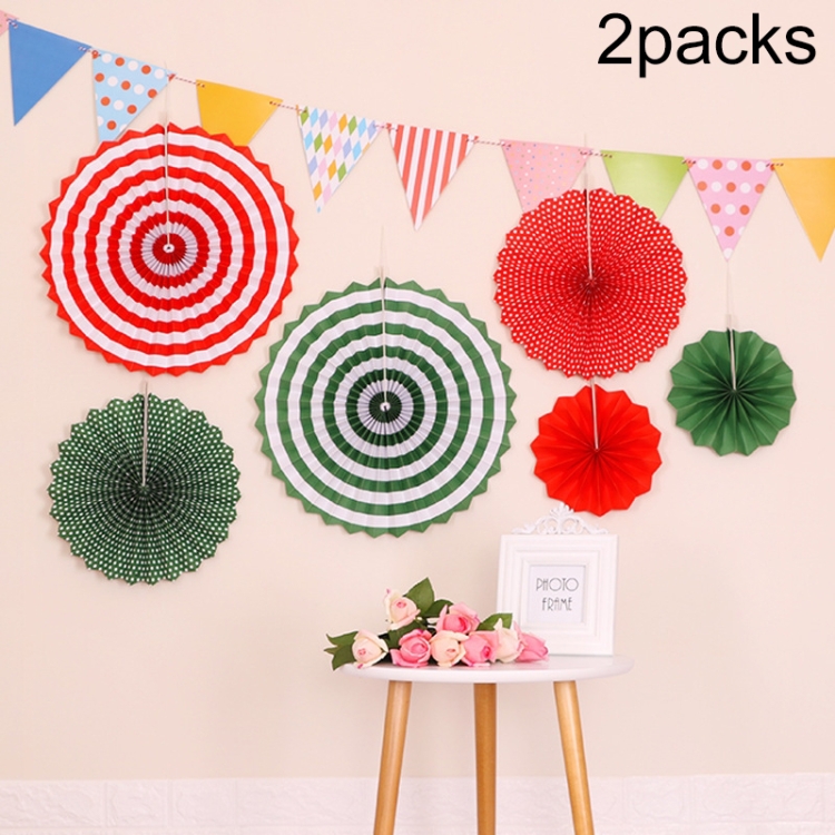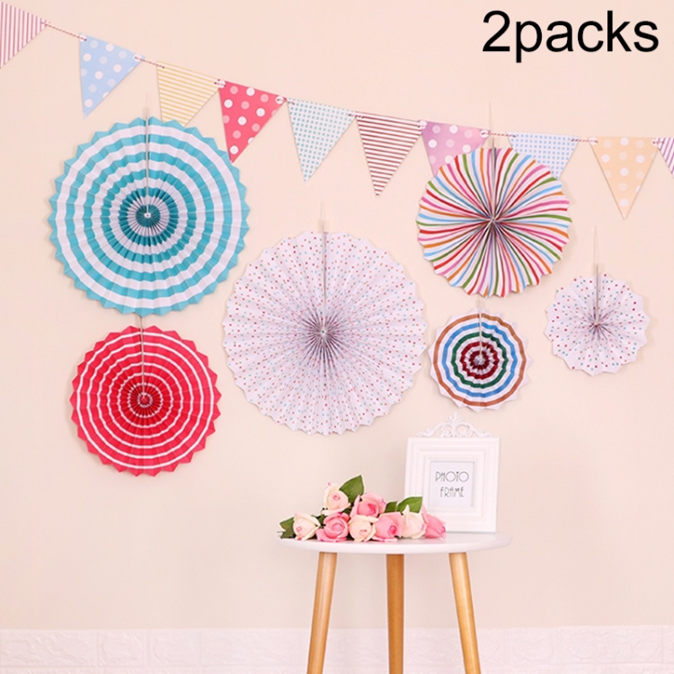 2 Packs Birthday Party Wedding Color Three-Dimensional Folding Fan Round Paper Fan Garland Ornaments