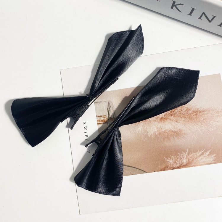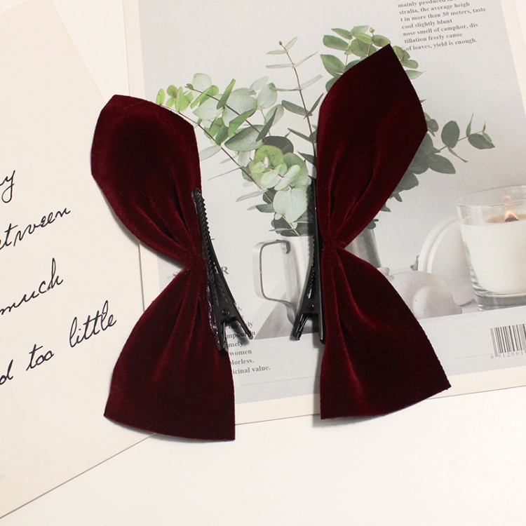 2 Pairs Half Bow Hair Clip Retro Girl Side Duckbill Clip Hair Ornament, Colour: Polyester Red