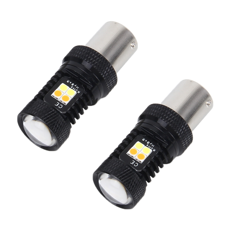 2 PCS 1156/BA15S/P21W/PY21W DC 12V 5W 350LM Auto Car Turn Backup 16 SMD-3030 Bulbs Reversing Lights, White + Yellow Light