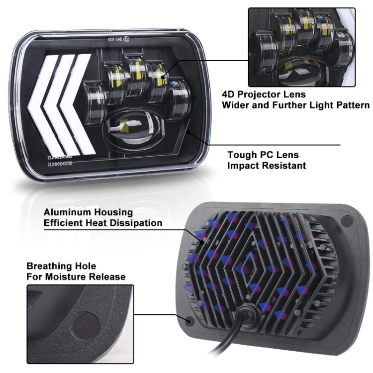 2 PCS 5X7 inch Car Modified Red Background LED Square Headlamp for Jeep Wrangler