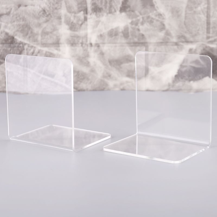 2 PCS Acrylic Transparent Bookstand L-shaped Bookends Bookshelf