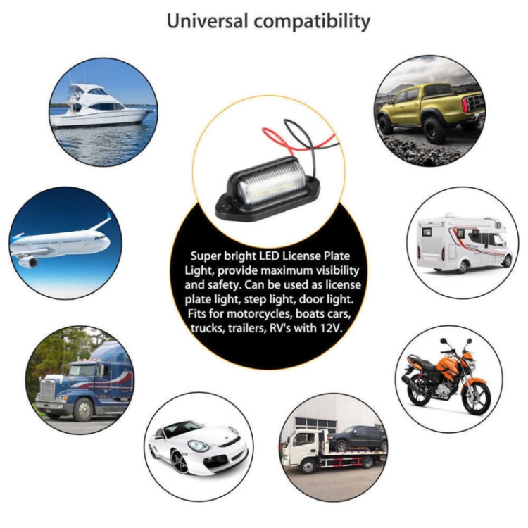 2 PCS Car Van Bus Trailer LED Taillight Side Light 12-24V 6LEDs License Plate Light