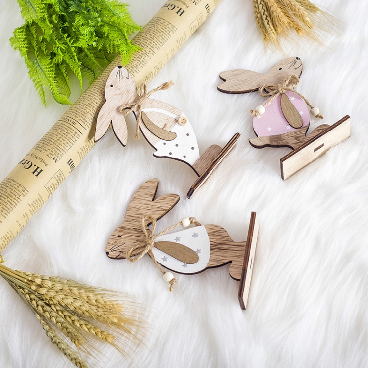 2 PCS Creative Easter Home Wooden Rabbit Decorative Ornaments