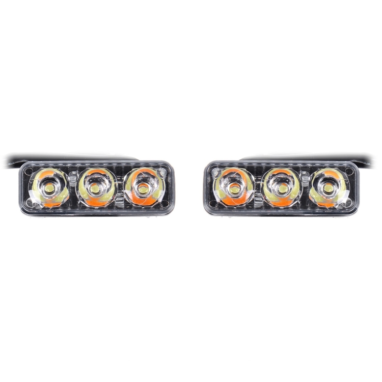 2 PCS DC 12V 6W 400 LM 6000K Tri Circular Car DRL&Turn Light(White Light + Yellow Light), Cable Length: 50cm