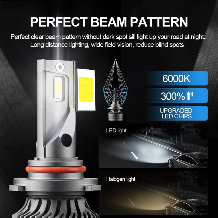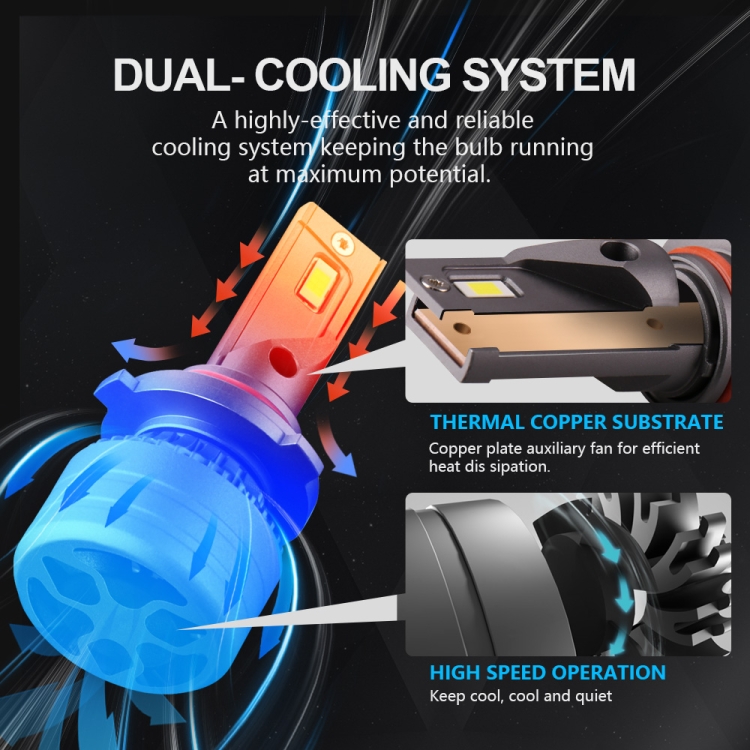 2. Powerful heat dissipation: Aluminum heat sink and 12,000 RPM turbo cooling fan provide high-efficiency cooling to ensure the brilliant continuous light of your LED car light bulb for more than 50,000 hours. The control driver has an intelligent control chip that can monitor the fan speed to achieve the best thermal protection and performance, and provides a wide voltage, constant current IC.