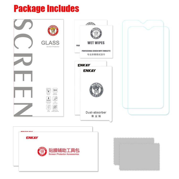 2 PCS ENKAY Hat-prince 0.26mm 9H 2.5D Curved Edge Tempered Glass Film for OnePlus 6T & 7