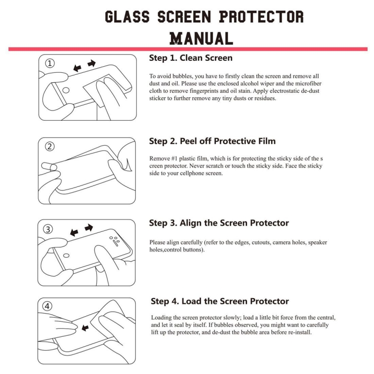 2. When removing for re-use, the adhesive properties might wear off to an extent where the screen protector will not adhere to the device. It is not recommended to rouse the glass protector once its been applied.