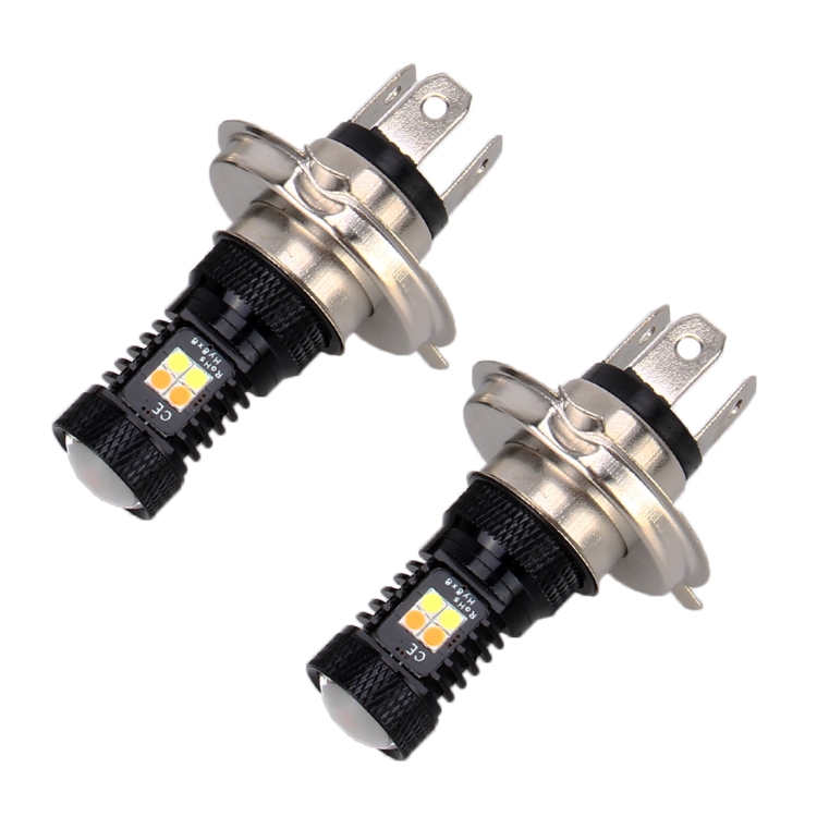 2 PCS H4 DC 12V 5W 350LM Auto Car Fog Lights with 16 SMD-3030 LED Bulbs, White + Yellow Light
