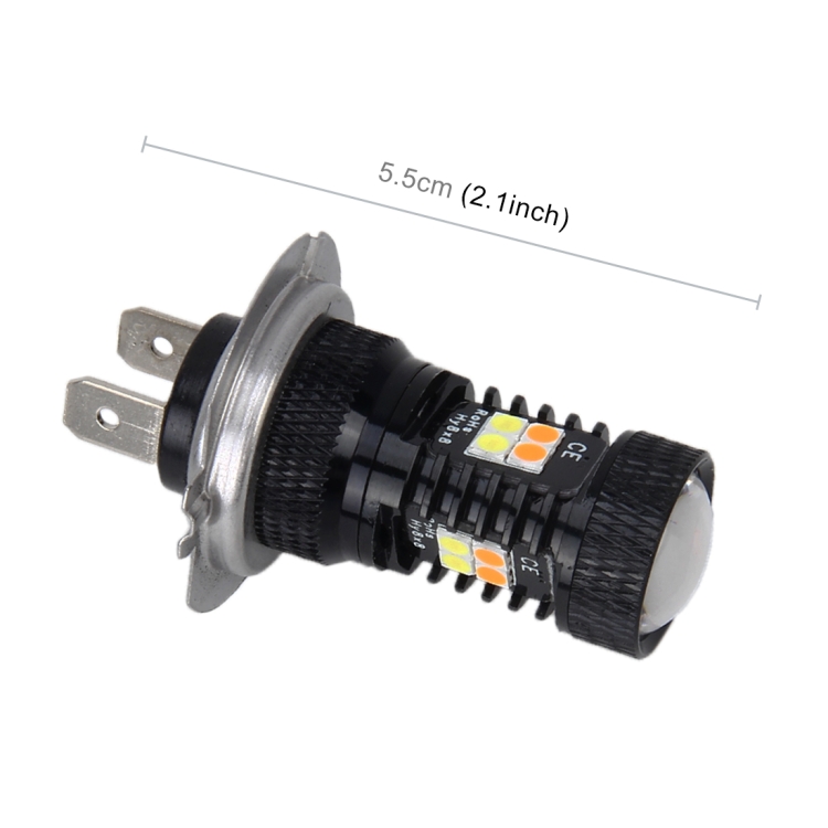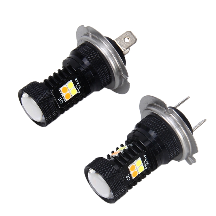 2 PCS H7 DC 12V 5W 350LM Auto Car Fog Lights with 16 SMD-3030 LED Bulbs, White + Yellow Light