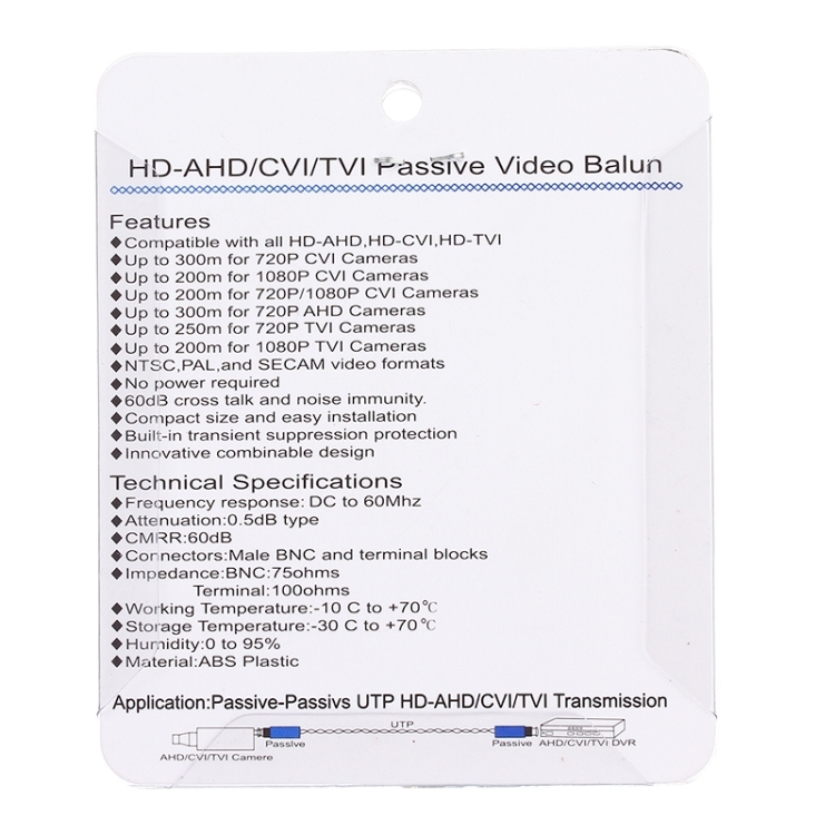 2 PCS HD 202E Enhanced Version Coaxial CVI/TVI/AHD 1CH Passive Transceiver Video Balun