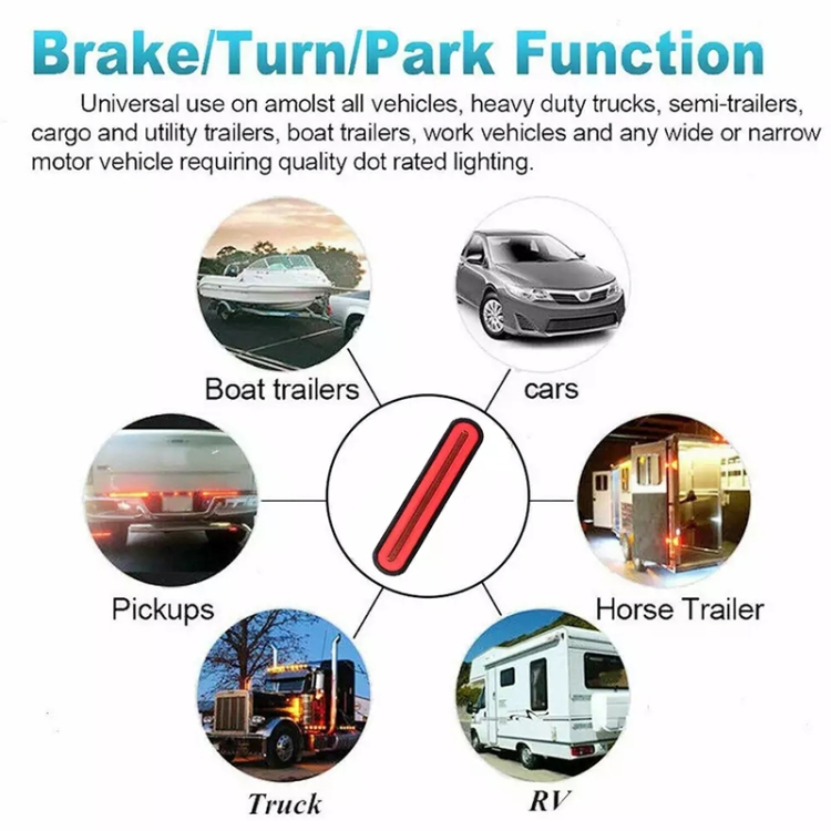 5. Function: low red light for running lights + high red light for brake lights + yellow light for turn signals
