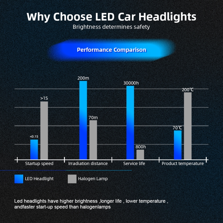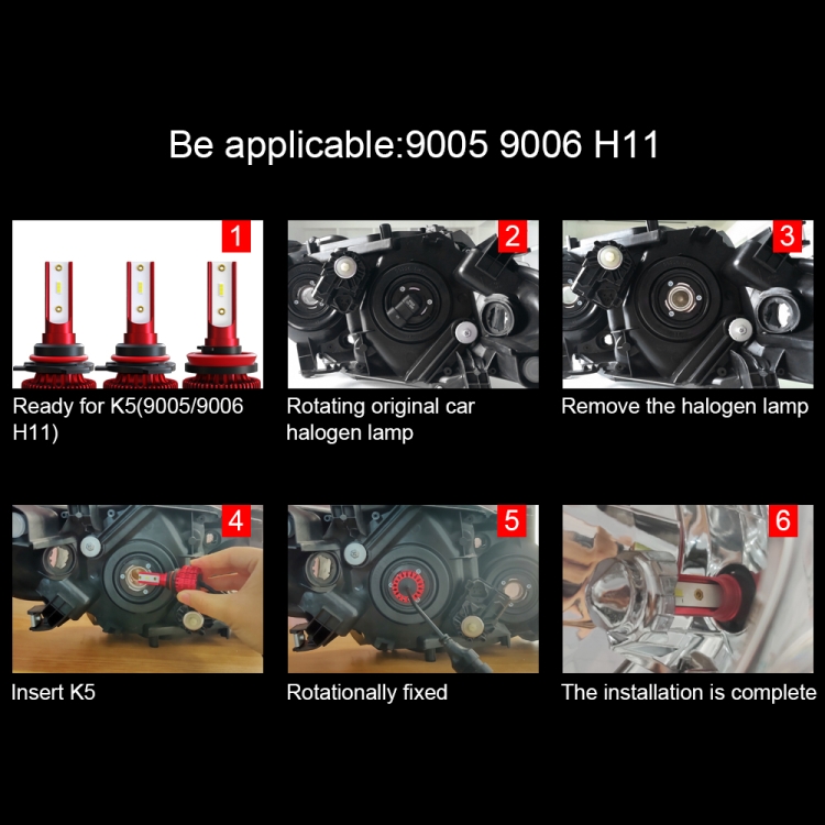 1. High brightness: The latest CSP with 6000K cool white LED chip; 200% brighter than the existing halogen headlights.