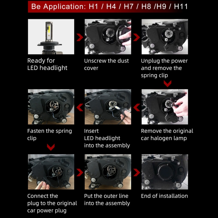 | Option | H1, H4, H7, H8 / H9 / H11, 9005 / HB3 / H10, 9006 / HB4 |