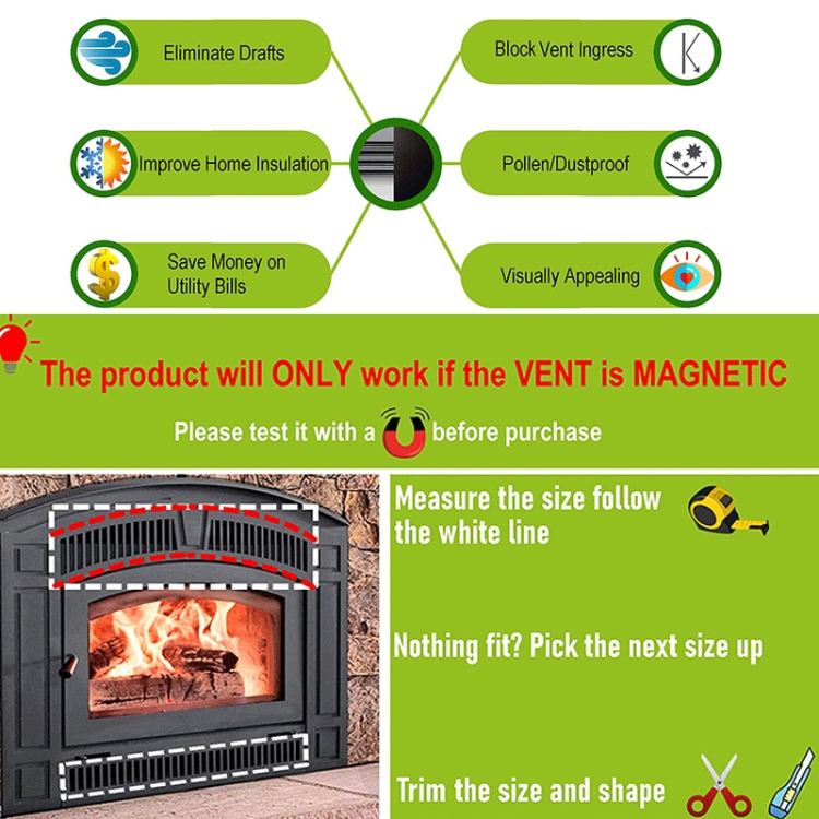 6. Can be easily trimmed with scissors to better fit the vent of your fireplace.