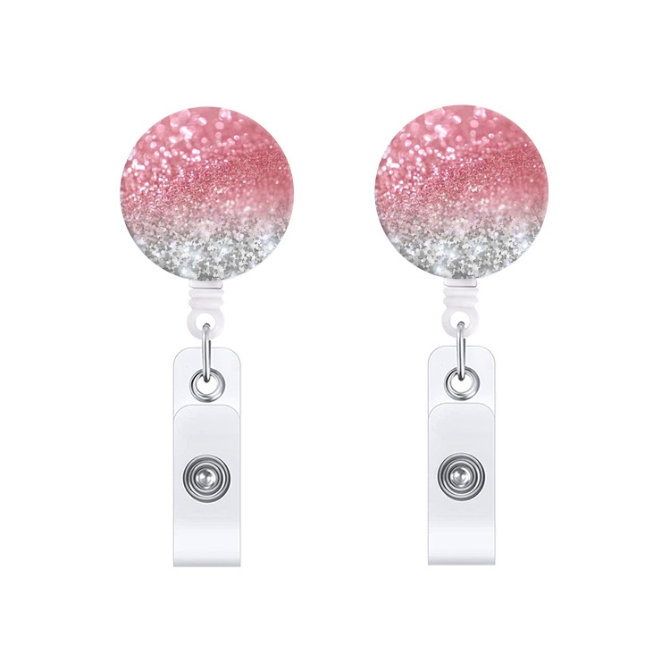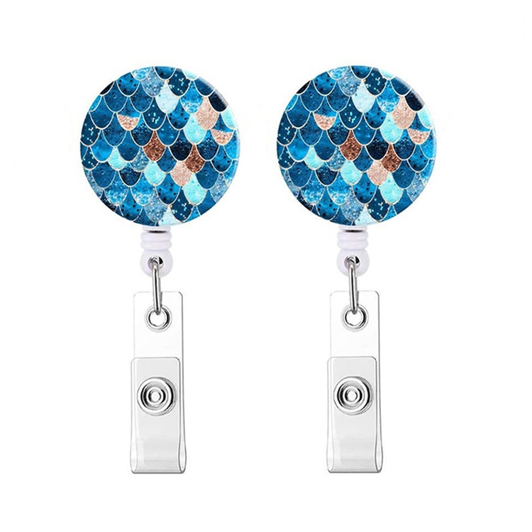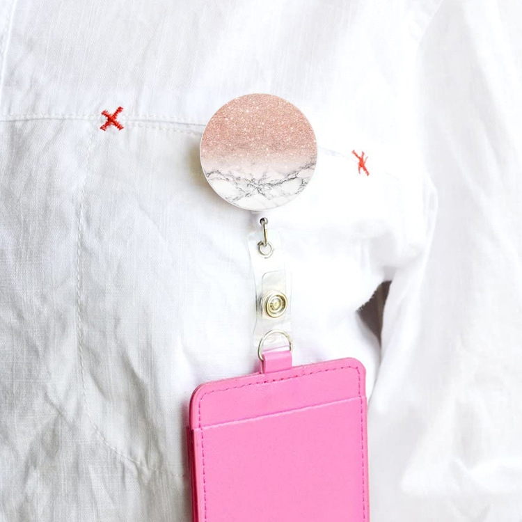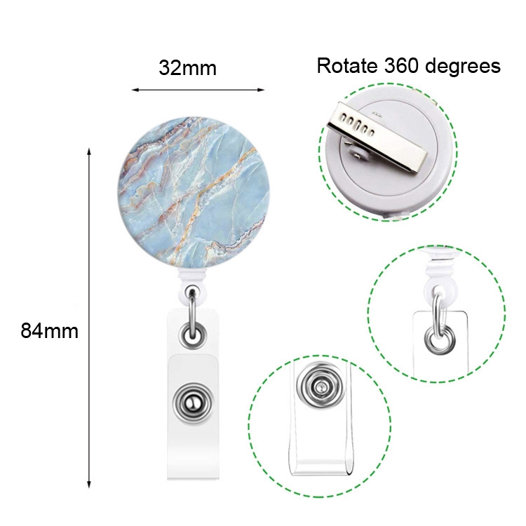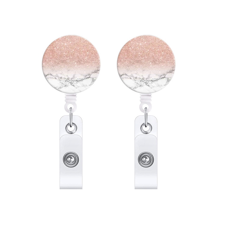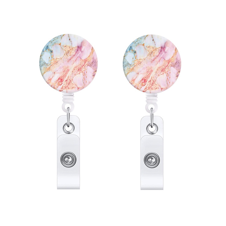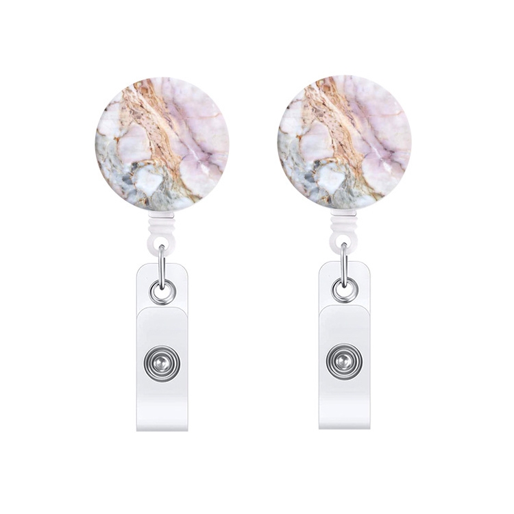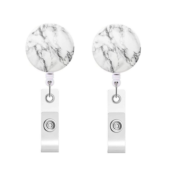 2 PCS Marble Texture Drop Glue Retractable Badge Reel Name Tag Card Badge