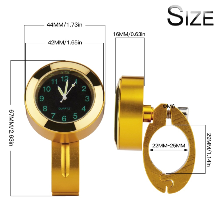 2 PCS Motorcycle 22-25mm Handlebar Clock Quartz Watch with Lock