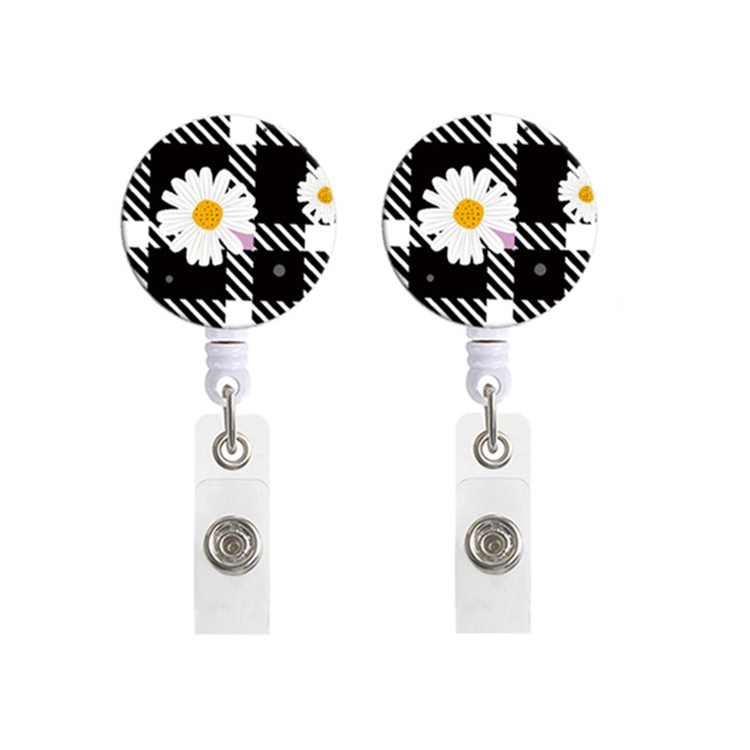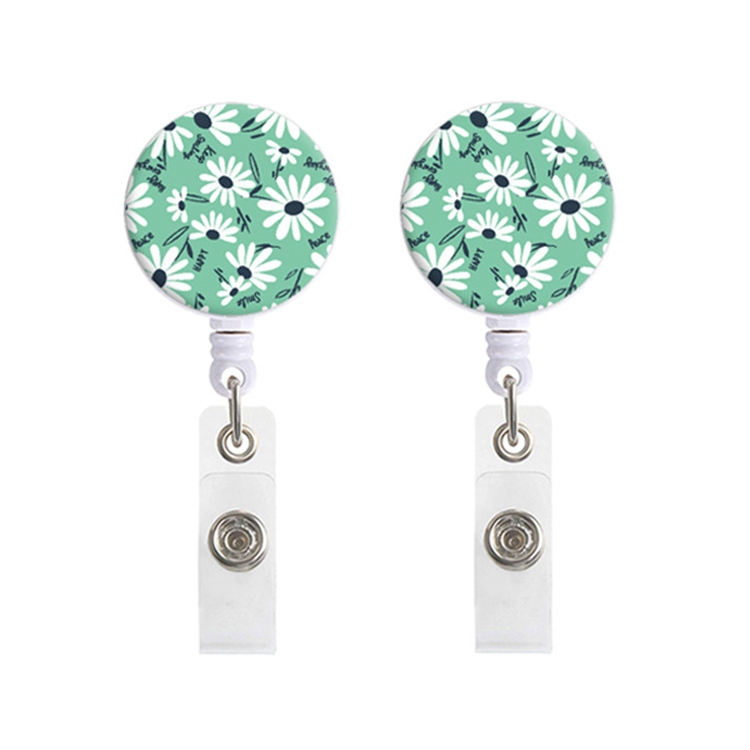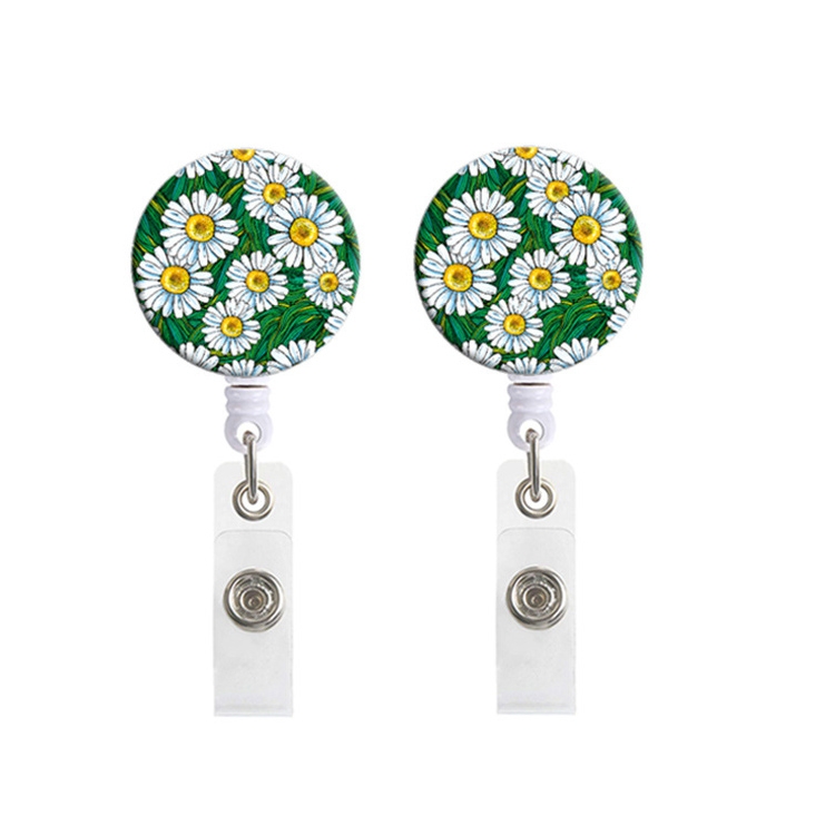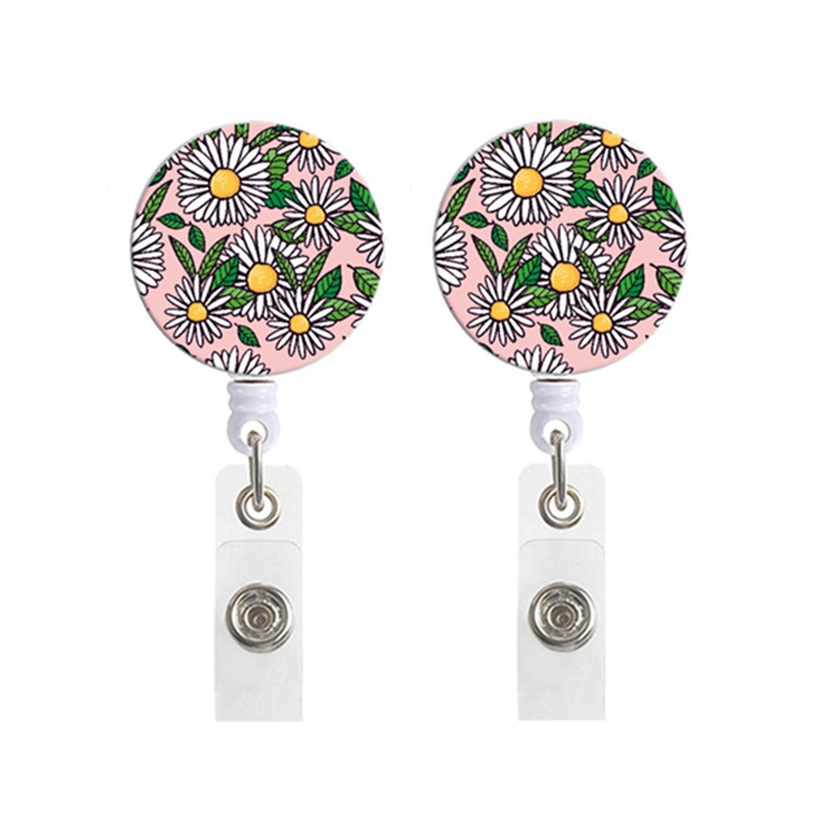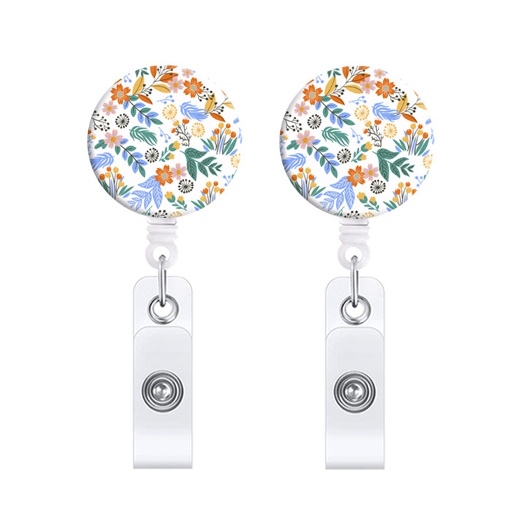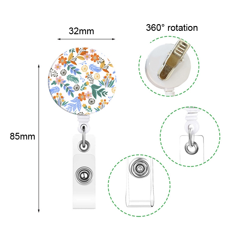 2 PCS Retro Fresh Small Floral Retractable Badge Reel Name Tag Card Badge