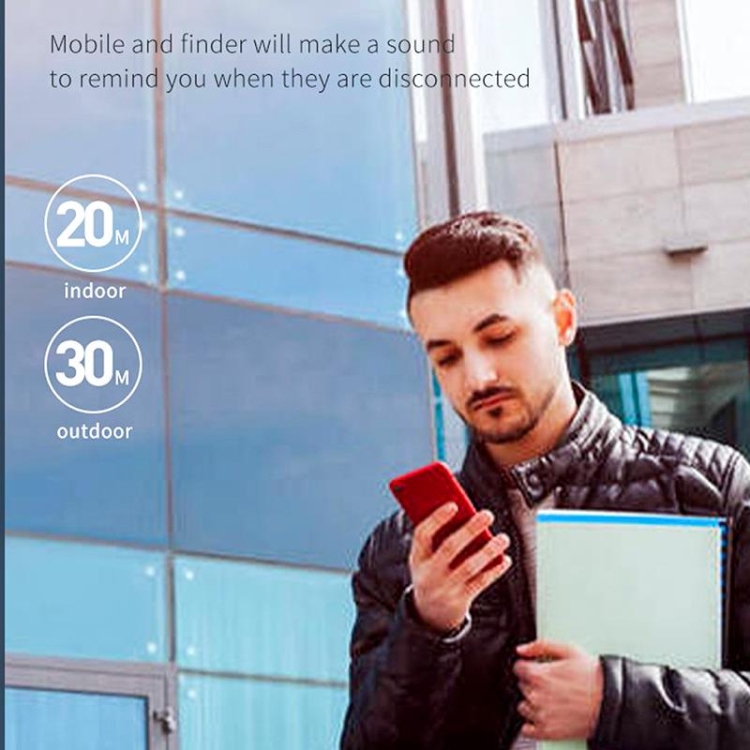 2. After binding the anti-lost device to the APP, its use range is about 30 meters (open range). Because Bluetooth is interfered by the surrounding environment, its connection distance is different in different use environments.