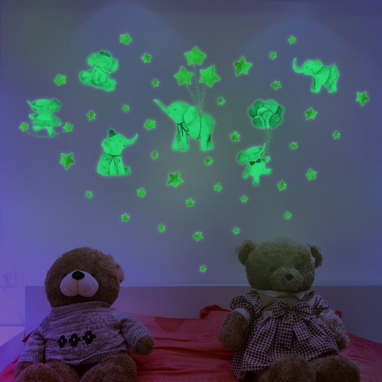 2 PCS/Set YG016 Cartoon Animal Element Star Baby Elephant Luminous Wall Sticker